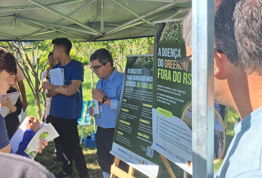 Encerrando o circuito, a Estação 7 discutiu a Proteção da Citricultura frente ao HLB/Greening, com o extensionista Werner Ritter Wegner.