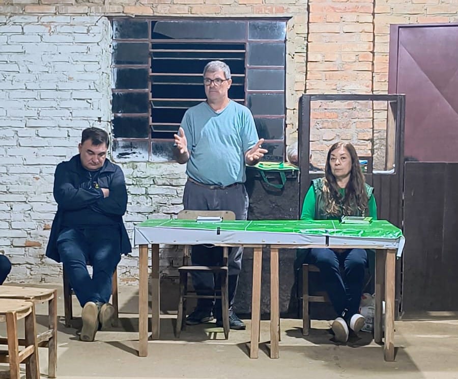O encontro contou com a participação do presidente da entidade, Mano Pedroso, da presidente do Sindicato dos Trabalhadores Rurais (STR), Niura da Rosa, e do coordenador de Fomento Rural da Prefeitura, Joceli da Rosa.