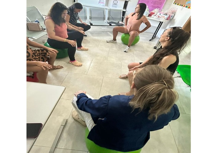 Durante o encontro, foi realizada uma oficina de pilates conduzida pela profissional Alexandra, com a prática de exercícios específicos e seguros para este período, contribuindo para o bem-estar físico e emocional das gestantes. Além da atividade física, as participantes também receberam orientações importantes sobre saúde e cuidados na gestação.