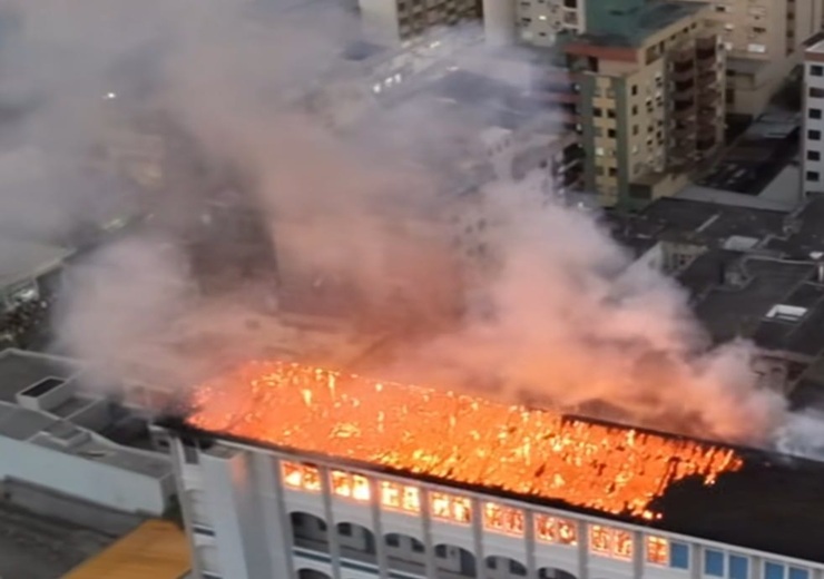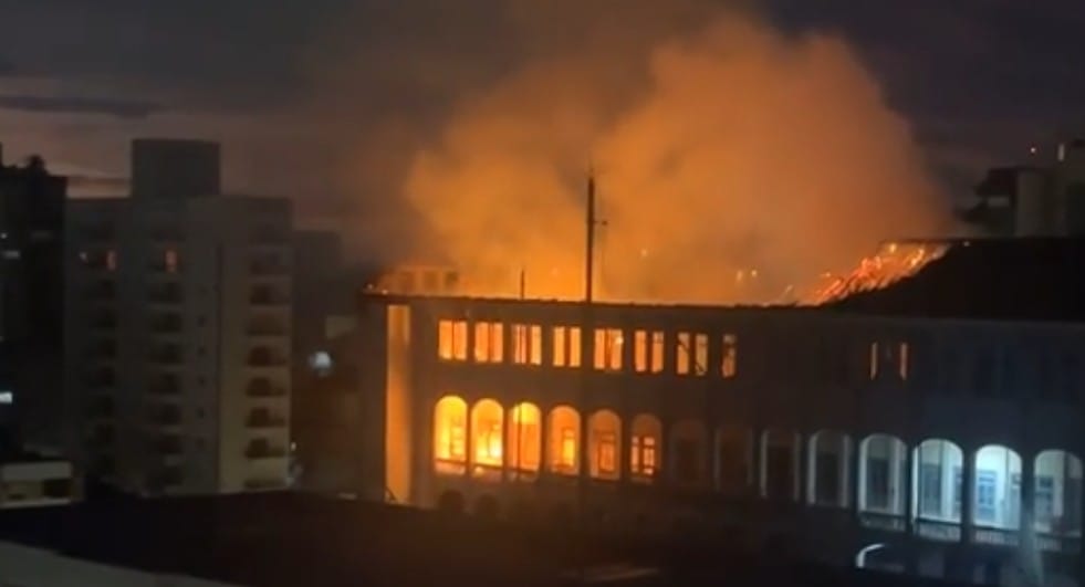 Incêndio de grandes proporções atinge Colégio Marista em Santa Maria.